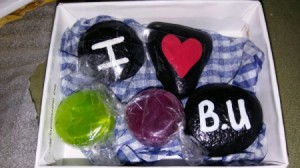 Go on 5 below.com and buy a painted rock kit. Paint him a nice rock. Here i mine I ordered of ebay. I put it in a candy box. lol