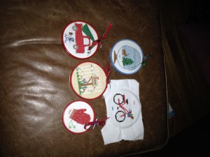 I try to make a new one every year, either from a craft kit or a counted cross-stitch. Country Living Magazine has counted cross-stitch patterns available on-line every month, and I've made nearly all their Christmas ones, plus adapted some to be Christmasy.