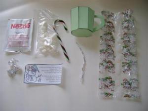 I love using this, last year I found this and used it to put in Christmas candy bags for our church. Instead of mugs I use plastic baggies from the craft area of walmart, and place everything neatly in them, with the marshmallows in their own bag.