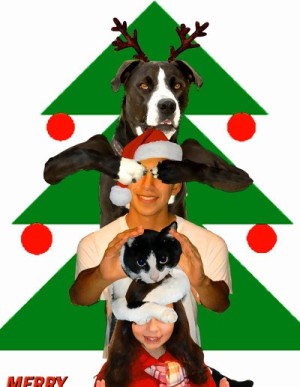 Christmas card photo ideas, anyone have an idea for a Christmas picture to go with cards that I purchased? The card says "Joy to the World" and "Peace". I have 2 children, a girl and a boy, 10 and 13. Thanks!
