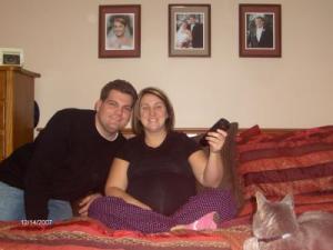 Last year I was very pregnant at Christmas with our first son. It was common knowledge to all who knew us that I had been on bed rest since Halloween. My husband and I set up the camera to take a picture of us laying in bed, me in pajamas holding the remote. Our caption said "Happy Holiday's from our bed-rest to yours!" We also added a recent ultrasound picture! Everyone loved it!