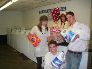 We all dressed up in white shirts and I cut out the numbers 2005 in red felt and tacked one number on each of our shirts. Standing as "2005" we all held party horns and threw confetti in the air. It was a great photo to keep up "all year" as it was not a traditional holiday photo!