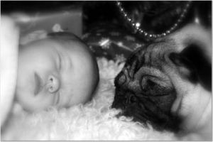 Sometimes you don't know you have the right picture until you look them over later. We had given up on getting our one-year old in a Santa Suit and our dog with reindeer antlers to pose and look at the camera at the same time. We tried everything including props such as a dog treats and a Christmas ornament for him to toss. After over 50 pictures of him pulling the dogs antlers, taking off his hat, falling over, and sobbing we decided to pack it in. The next morning we came across this gem - a little Photo enhancement and Voila!