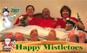This was our card from last year. "Happy Mistletoes" It went over very well! We used the one with our toes up in the air, but the other one is cute too, shaped like a wreath.
