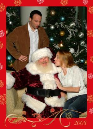 This is ours for 2008. I made my fiance go to the mall and take a picture with Santa. In the final card I wrote, "Wishing you love this Holiday Season"
