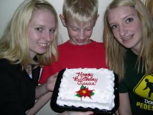 Our last name is Gray and we live on a farm so we took this picture and quoted the Christmas song "Sleigh Ride"...there's a birthday party at the home of Farmer Gray, it'll be the perfect ending of a perfect day.
