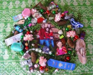 Everyone loved this card that I made with things we collected over the year, some pictures, and greens that I was using to decorate the house! Couldn't get my kids to smile for a picture but they were so excited to collect things for the picture and help arrange them. Here is the caption: