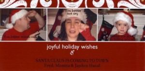 Here's our first Christmas card Photo last year of our daughter who was 4 months old. I just put it on a Photo card with a Santa that read "HO HO HO".