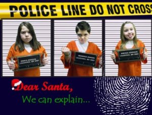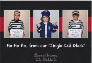 Our son got a black eye at school a couple days before we were going to do Christmas pictures, so we took advantage of the eye and changed our idea to a jail theme. My husband is a police officer, so we had access to our props and had such a great time with it! You published a picture of ours years ago - the 3 children in the bubble bath, rosied up cheeks and Santa hats - we love this site and try and get ideas from it every year!