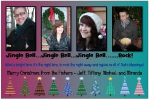 With two working kids (one in college, one in high school) and many different commitments for all of us, it is very hard to find time for all four of us to get together to pose for a card. So we improvised with a "Jingle Bell, Jingle Bell, Jingle Bell, Rock" theme. I think it turned out pretty good and everyone got a great laugh.